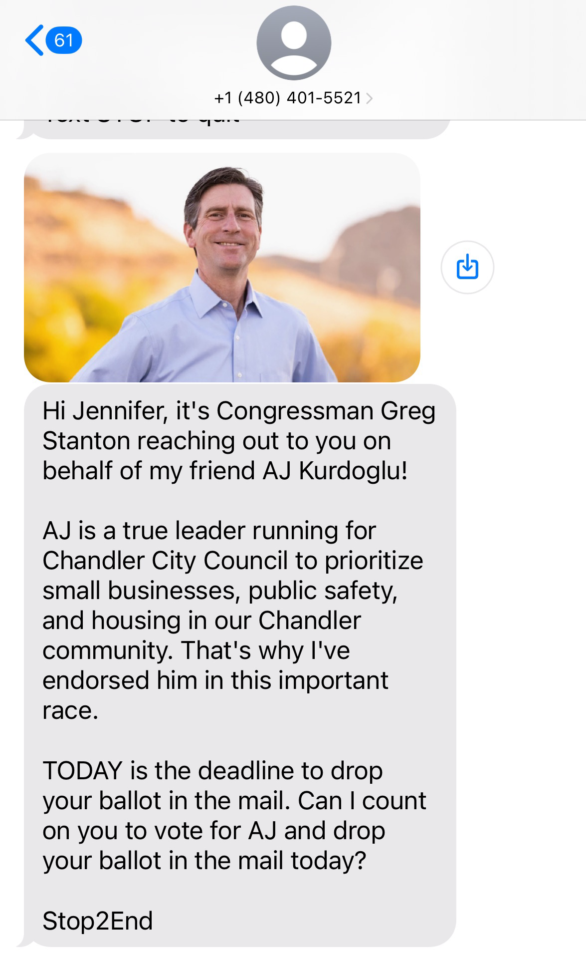 Text to Democratic and Left-Leaning Independent Voters from Congressman Greg Stanton